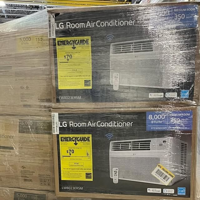 Pallets may include a mix of window units and portable air conditioners, perfect for cooling bedrooms, apartments, offices, or larger living spaces.